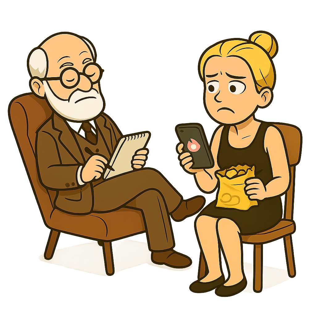 Wenn du schon mal beim Scrollen durch Insta plötzlich deine tiefsten Kindheitsmuster gespürt hast: Du bist nicht allein. Freud hätte das vermutlich „verdrängte Triebenergie in Verbindung mit einer oral-fixierten Konsumneigung“ genannt.